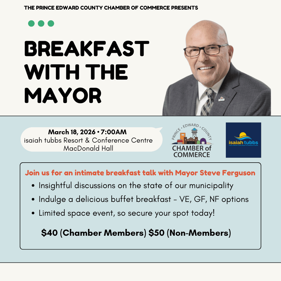 Join us for the PEC Chamber's Annual General Meeting at The Andrew on April 30 at 8 AM.